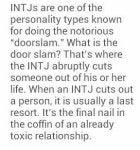 I found something interesting online today that INTJ and INFJ in a similiar way apparently do called "Doorslam".